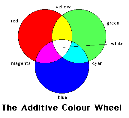 Go into a bar some quiet night, and, if you can, walk through the three beams that make up the picture on the bar's projection TV (or, just put your hand in front of the lenses on the projector.) Notice how the red, green, and blue projections converge together to make the picture on the screen. Notice, also, how you now have to dodge the beer bottles being pitched by those patrons who are trying to watch the hockey game!