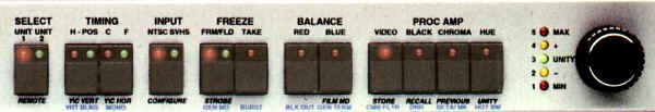 TBC Front Panel, showing Timing controls (horizontal and subcarrier) and processing amplifier adjustments (courtesy DPS)