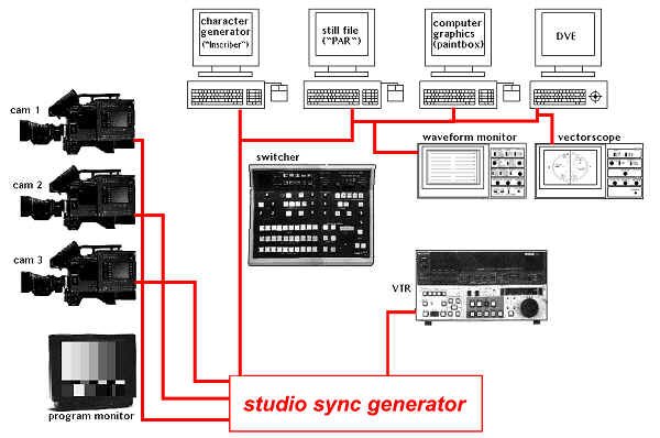 Typical studio configuration, showing distribution of sync pulses to various pieces of equipment